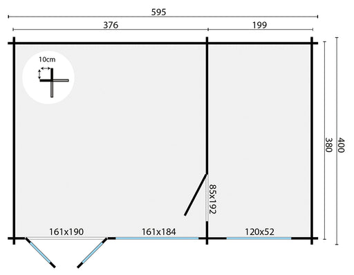 Original price €5.589,00 - Original price €5.589,00Original pricePrijs: €5.589,00€5.589,00 - €5.589,00Per stuk Prijs: €5.589,00| /Dikte wand 40mm Houtsoort geschaafd vuren Afmeting 595x400cm Funderingsmaat 575x380cm Nokhoogte ca. 223cm Aantal ramen (te openen) 1 Aantal ramen (...