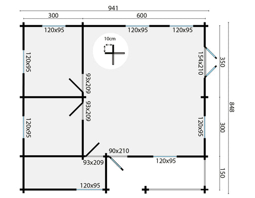 Original price €19.873,05 - Original price €19.873,05Original pricePrijs: €19.873,05€19.873,05 - €19.873,05Per stuk Prijs: €19.873,05| /Dikte wand 70mm Houtsoort onbehandeld, geschaafd vuren Afmeting 941x848cm Funderingsmaat 921x828cm Nokhoogte ca. 317cm Aantal ramen (te openen) 8 G...