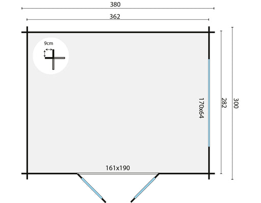 Original price €2.621,06 - Original price €2.621,06Original pricePrijs: €2.621,06€2.621,06 - €2.621,06Per stuk Prijs: €2.621,06| /Dikte wand 28mm Houtsoort geschaafd vuren Afmeting 380x300cm Funderingsmaat 362x282cm Nokhoogte ca. 217cm Aantal ramen (te openen) 1 Glas enkel gla...