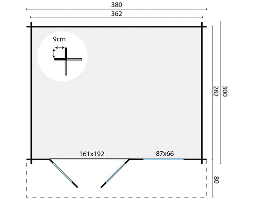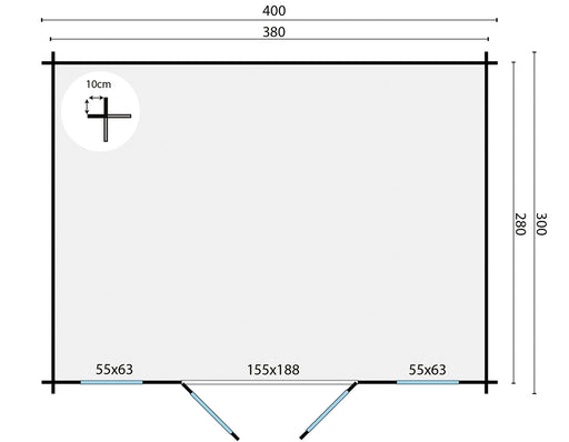 Original price €2.032,05 - Original price €2.032,05Original pricePrijs: €2.032,05€2.032,05 - €2.032,05Per stuk Prijs: €2.032,05| /Dikte wand 28mm Houtsoort geschaafd vuren Afmeting 400x300cm Funderingsmaat 380x280cm Nokhoogte ca. 233cm Aantal ramen (te openen) 2 Glas enkel gla...