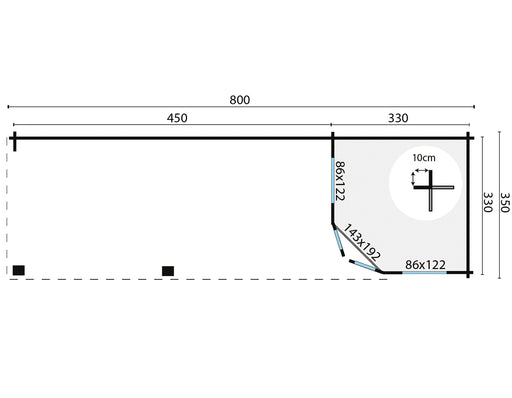Original price €5.148,05 - Original price €5.148,05Original pricePrijs: €5.148,05€5.148,05 - €5.148,05Per stuk Prijs: €5.148,05| /Dikte wand 44mm Houtsoort geschaafd vuren Afmeting 350x350cm Luifelmaat 450cm Funderingsmaat 780x330cm Nokhoogte ca. 302cm Aantal ramen (te openen)...