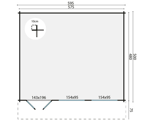 Original price €5.589,00 - Original price €5.589,00Original pricePrijs: €5.589,00€5.589,00 - €5.589,00Per stuk Prijs: €5.589,00| /Dikte wand 40mm Houtsoort geschaafd vuren Afmeting 595x400cm Funderingsmaat 575x380cm Nokhoogte ca. 223cm Aantal ramen (te openen) 1 Aantal ramen (...