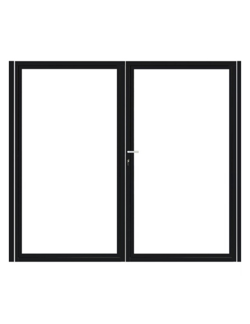 Dubbele stalen poort, zwart gepoedercoat, fijnstructuur, incl. hang- en sluitwerk (t.b.v. profielen 21mm dik)