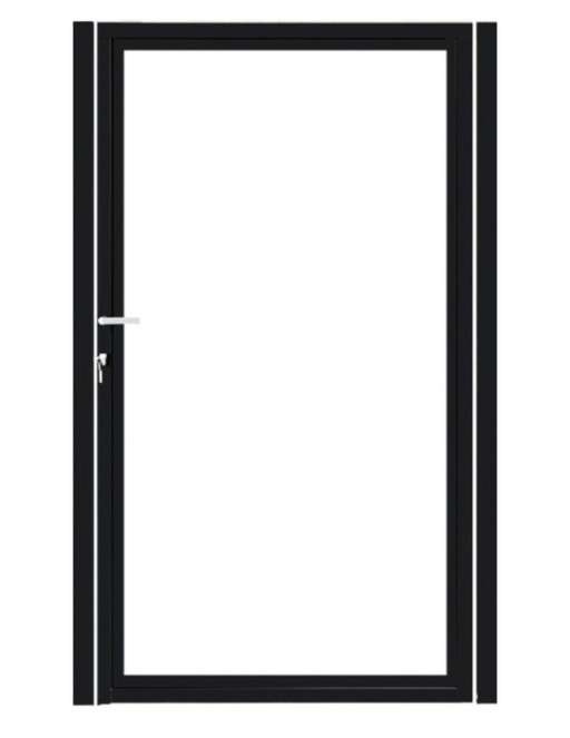 Enkele stalen poort, zwart gepoedercoat, fijnstructuur, incl. hang- en sluitwerk (t.b.v. profielen 21mm dik)