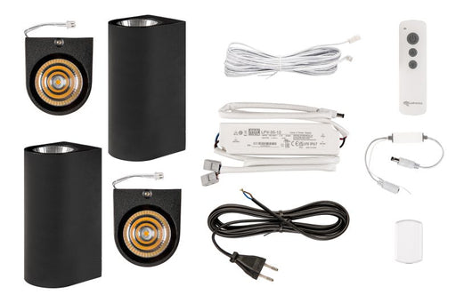 Trafo / verdeler incl. afstandbediening incl. 4 wand spots up/down (incl. kabels en splitter)