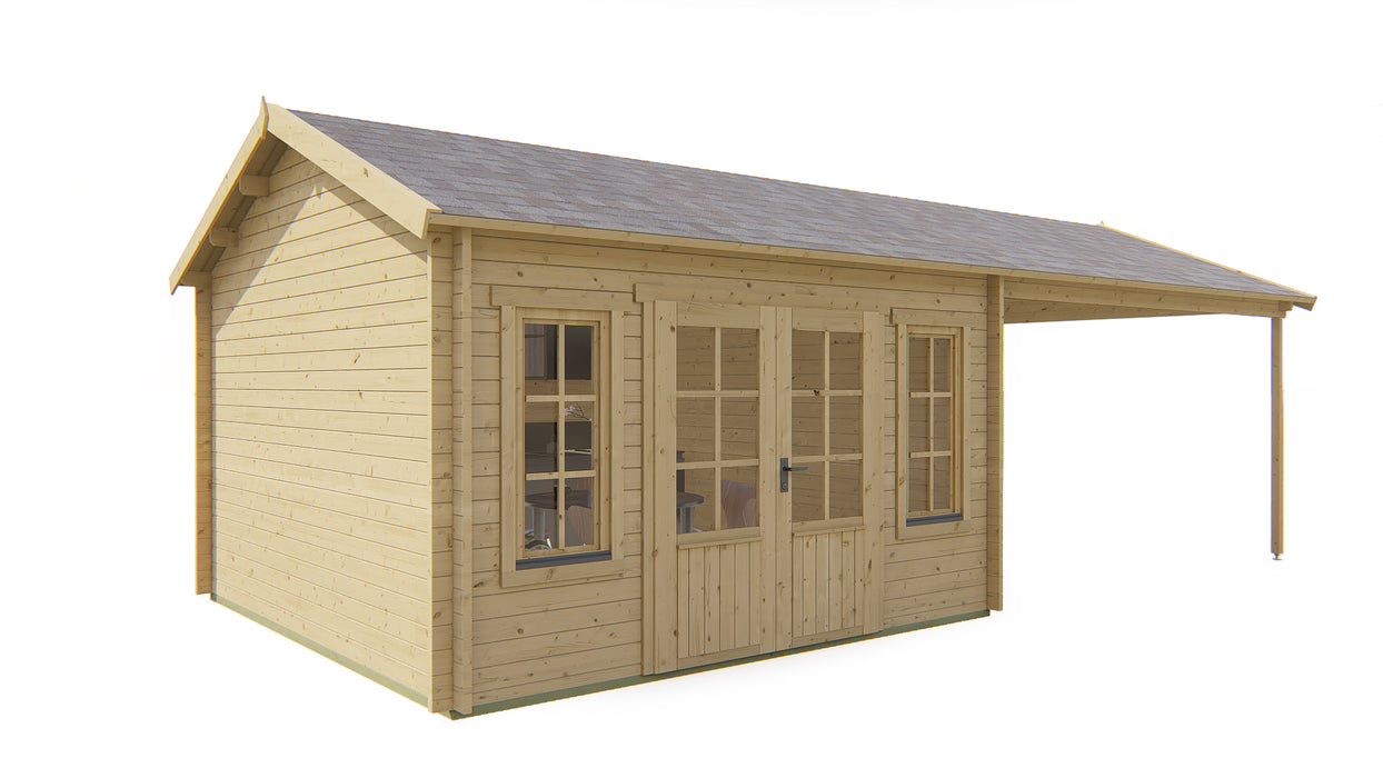 Blokhut - Tuinhuis Kwaspa | 44 mm | vuren grijs geïmpregneerd